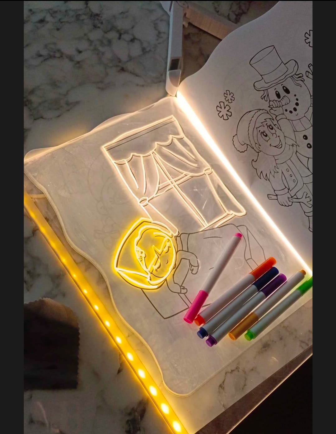 🎨 Ekran gerektirmeyen, hayal gücünü özgürce ortaya çıkaran çizim keyfi • 🌈 LED ışıklarla parlayan, neon efektli göz alıcı çizimler • ✍️ El yazısını geliştirir, ince motor becerilerini destekler • 🧼 Islak mendille kolayca sil, tekrar tekrar çiz • 🔌 USB ile çalışır, pil değiştirme derdi yok • 🎒 Hafif ve taşınabilir, evde ve seyahatte kullanım için ideal • 👶 3 yaş ve üzeri çocuklar için güvenli ve çocuk dostu tasarım • 🎉 Arkadaşlarla veya sevdiklerinle eğlenceli ve yaratıcı vakit